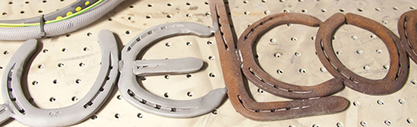 Hufeisenschild, während der Sandstrahl-Bearbeitung