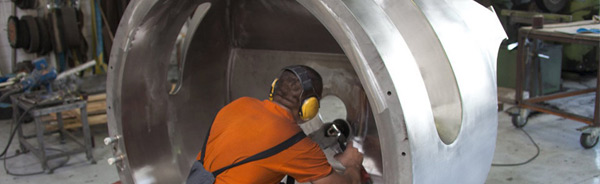 Wir schleifen auf unseren Langbandschleifmaschinen Bleche bis 4x2 Meter und eine Tonne Stückgewicht nach Rauigkeitsvorgaben