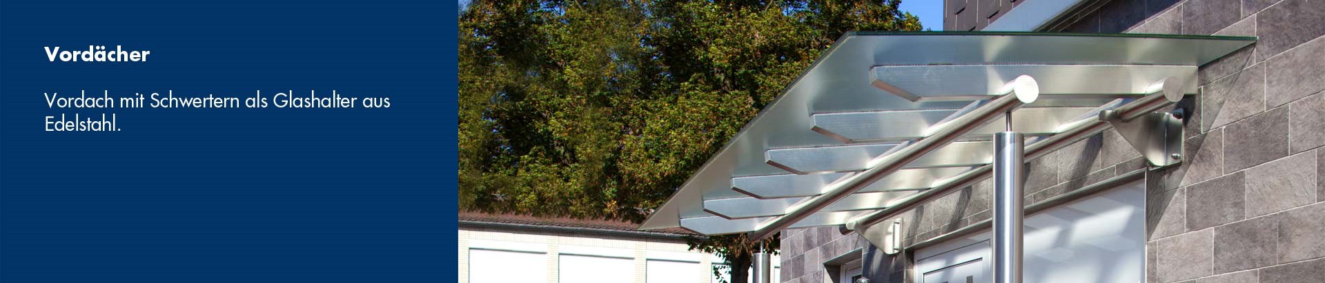Wer seinen Hauseingang gern trocken haben will, sollte auf ein Vordach nicht verzichten. Unsere hochwertigen Edelstahlkonstruktionen sind nicht nur stabil und sicher, sondern auch echte Hingucker. Wir bieten Ihnen verschiedene Varianten von